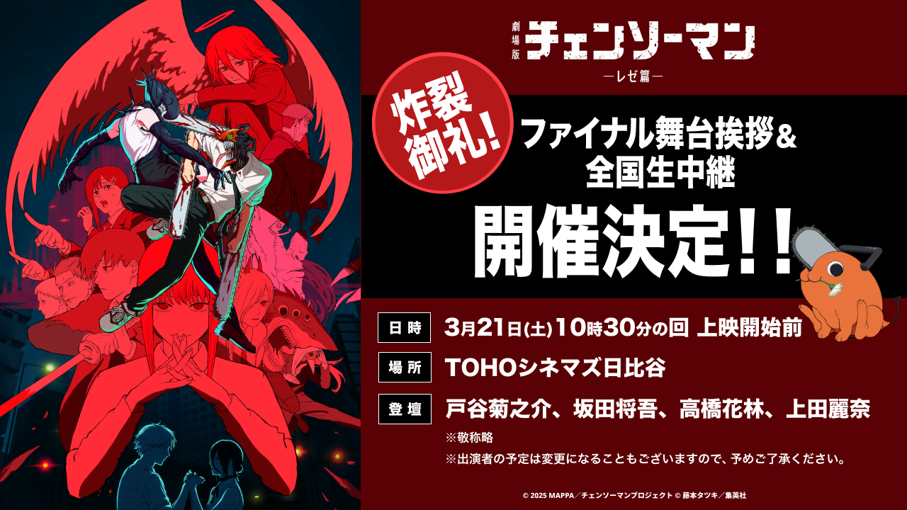 2026.03.10 劇場版『チェンソーマン レゼ篇』炸裂御礼!ファイナル舞台挨拶&全国生中継 開催決定!!