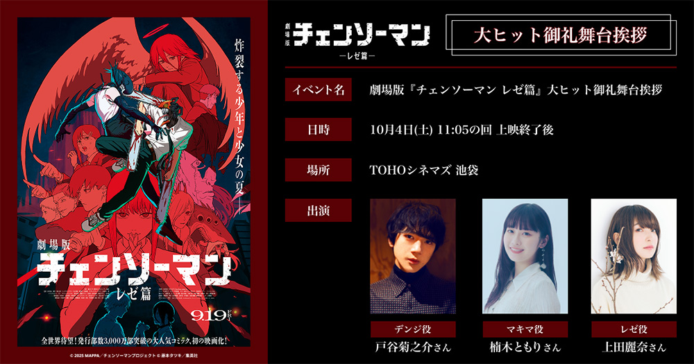 劇場版『チェンソーマン レゼ篇』大ヒット御礼舞台挨拶開催が決定しました!