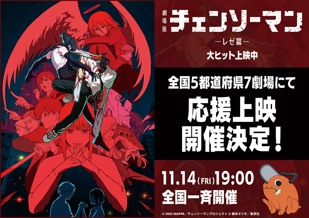 2025.11.04 劇場版『チェンソーマン レゼ篇』11月14日(金)から5都道府県7劇場にて、応援上映の開催が決定‼